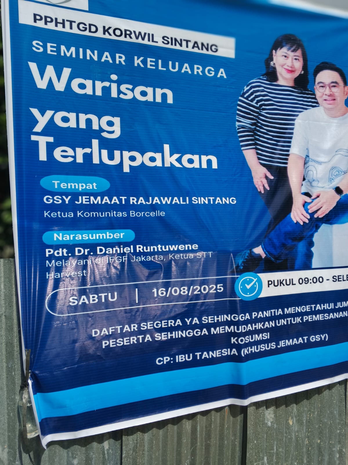 Pembicara pasangan suami istri (Pasutri) Pdt. Dr.Daniel Runtuwene/Gres, pada Seminar Keluarga Persekutuan Para Hamba Tuhan Garis Depan (PPHTGD) Korwil Sintang – Kalbar (16/8) tampil bicara secara bergantian.