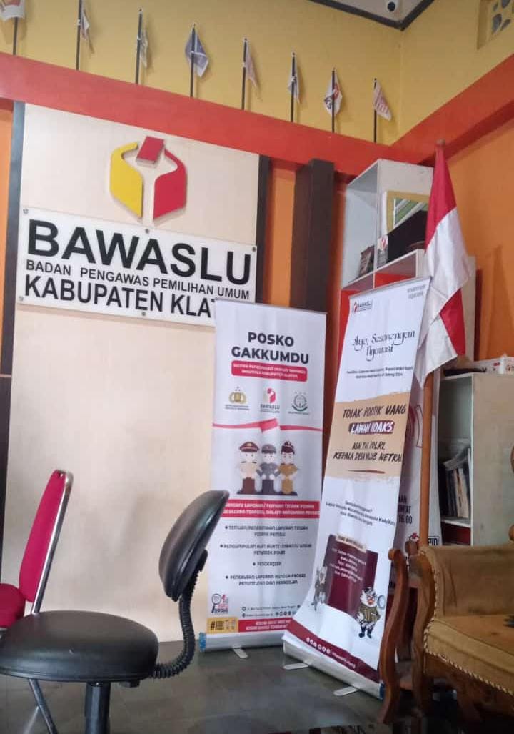Sidang hari pertama pemanggilan penggugat dan menghadirkan para saksi dari kubu paslon nomor urut 01, sidang di lakukan di Ruang GAKUMMDU BAWASLU Kabupaten Klaten secara tertutup.