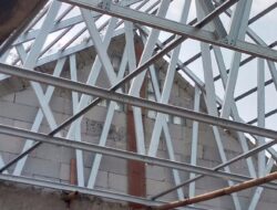 Selain itu juga terlihat rangkaian pemasangan rangka atap yang jarang sengkangnya tidak sama antara dudukan gorden atap satu dengan lainnya tidak sama.