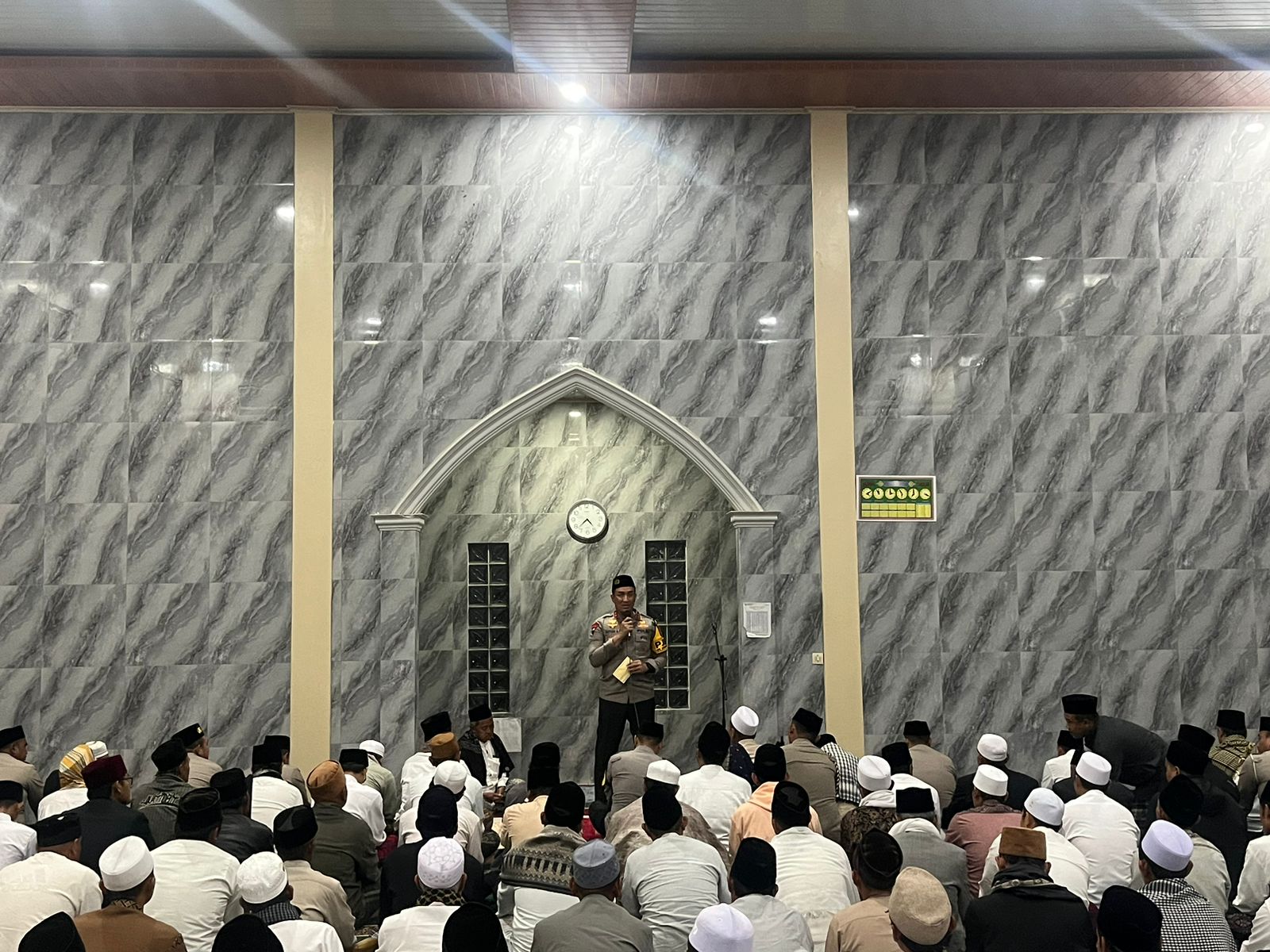 Dirbinmas Polda Banten Kombes Pol Dr. Raden Muhammad Jauhari S.H., S.I.K., M.Si mendampingi Kapolda Banten Irjen Pol Suyudi Ario Seto, S.H., S.I.K., M.Si untuk melaksanakan shalat berjemaah subuh keliling yang di laksanakan di Pondok Pesantren Qothrotul Falah Desa Sumur Bandung Kecamatan Cikulur Kabupaten Lebak Banten, Selasa (5/11) pukul 04.15 WIB.