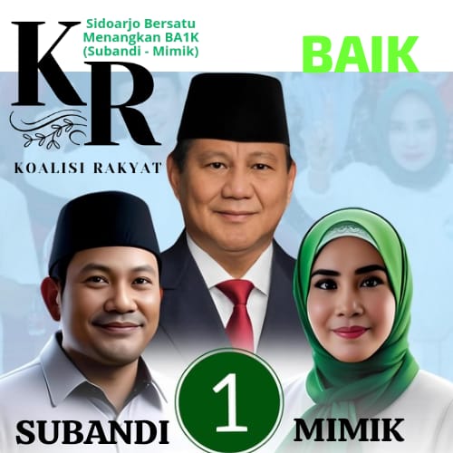 Pada diskusi Bolone Abah Subandi (BAS) dihasilkan maklumat bersama tentang pentingnya Koalisi Rakyat untuk memenangkan pasangan calon nomer satu BAIK (Subandi – Mimik) dalam Pilkada Kabupaten Sidoarjo (13/11/2024). Maklumat tersebut berlaku untuk semua unsur dan elemen di luar ring partai politik pendukung.