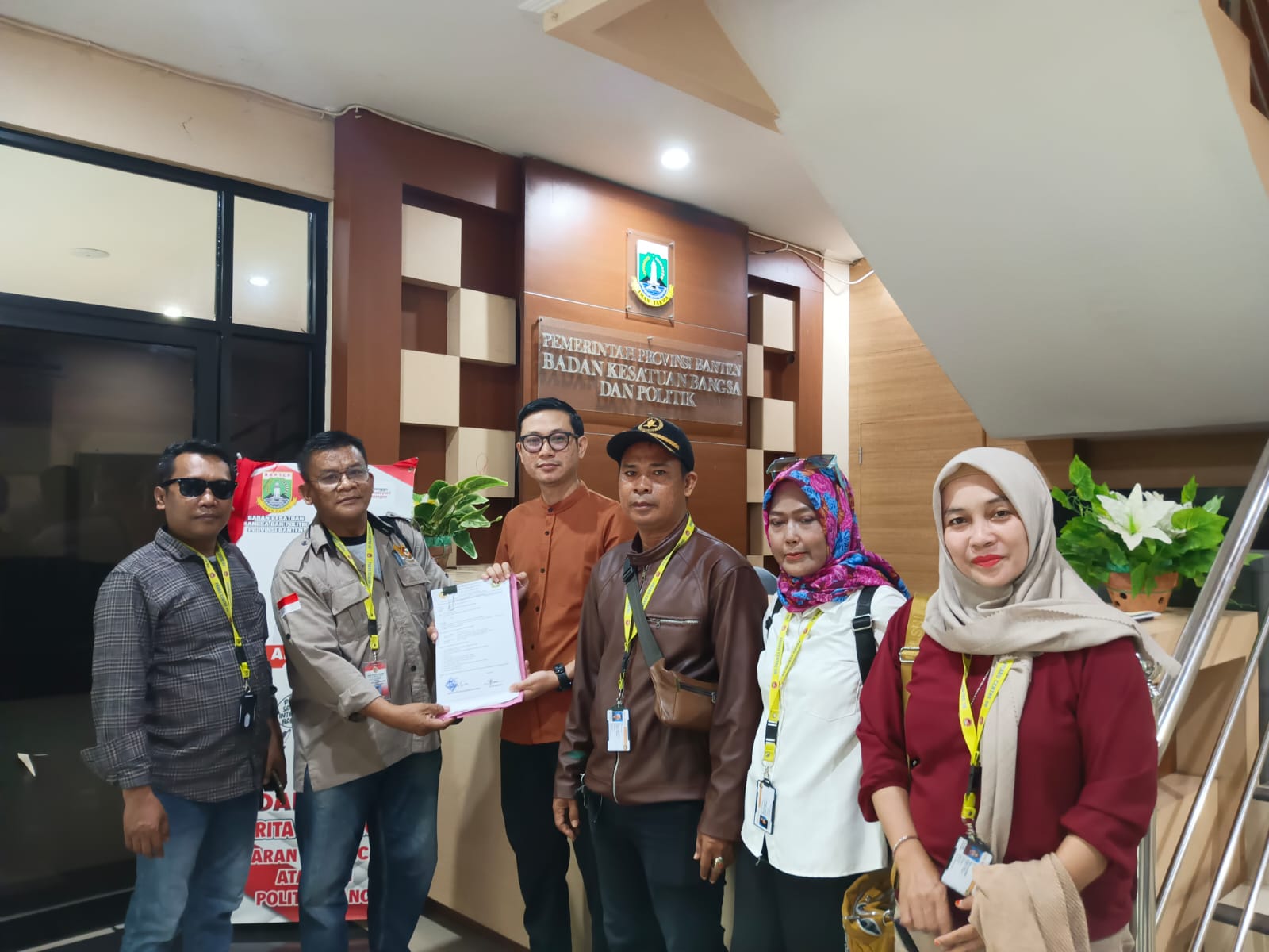 Ketua Dewan Pimpinan Wilayah (DPW) Pelita Prabu Provinsi Banten, Ramlan Bonar Alamsan Simamora (Rambo-red) bersama beberapa unsur pengurus lainnya, menyerahkan kelengkapan berkas organisasi Pelita Prabu ke Kantor Bakesbangpol Provinsi Banten, Jum’at (04/10-2024) pagi.