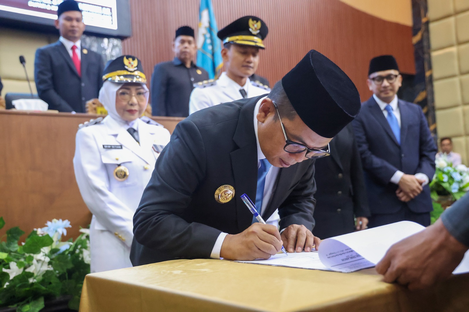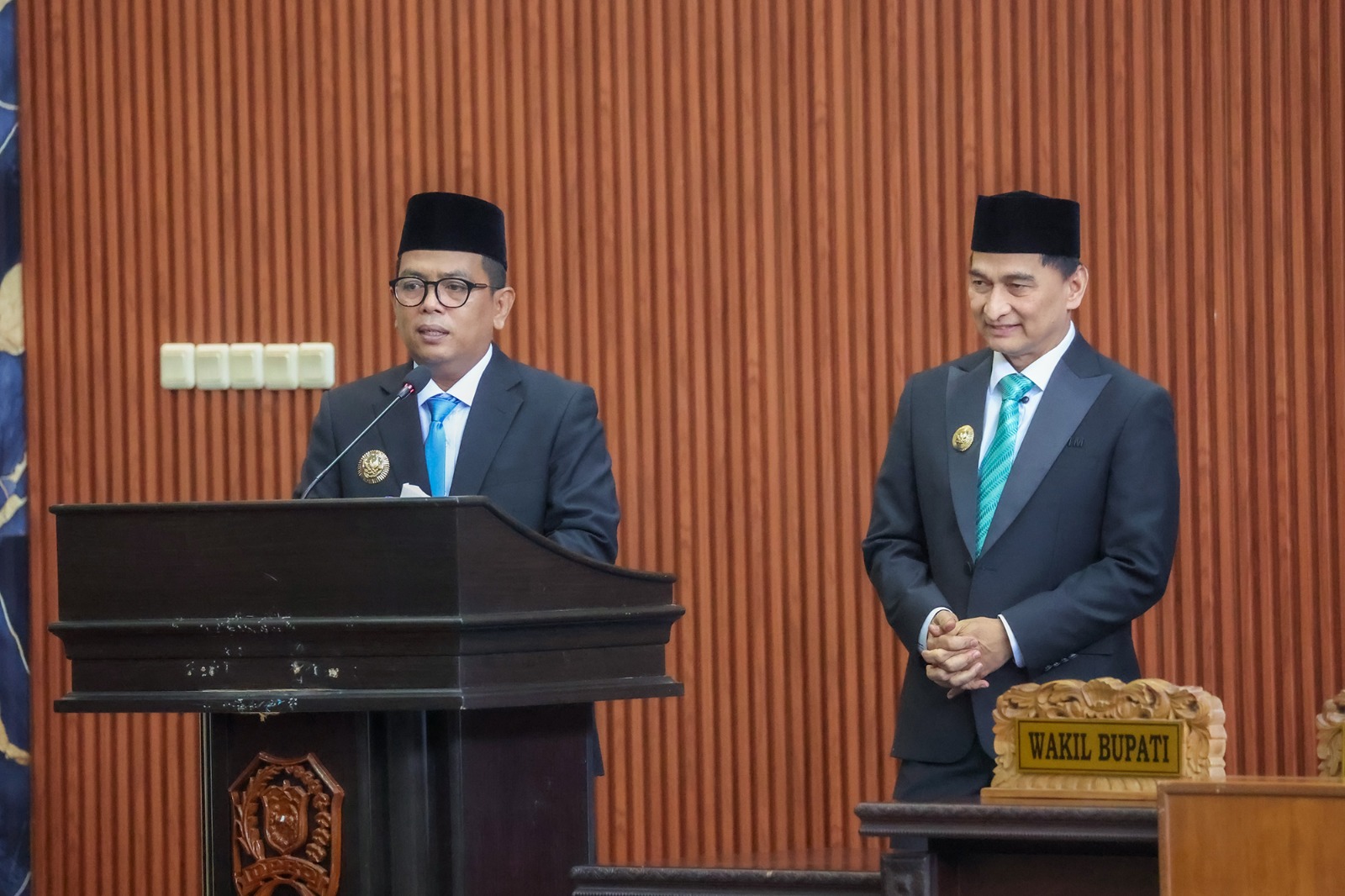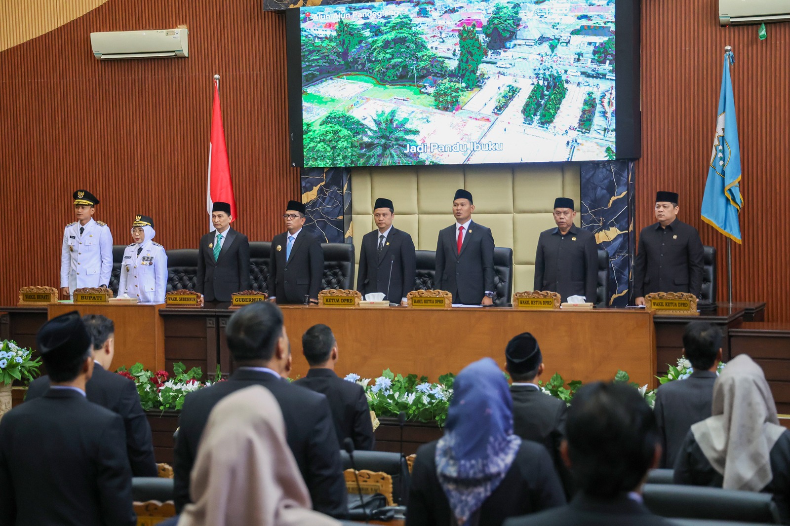 Gubernur Banten Andra Soni menghadiri Rapat Paripurna DPRD Kabupaten Pandeglang Serah Terima Jabatan (Sertijab) Bupati dan Wakil Bupati Pandeglang, Selasa, (4/3/2025). Turut mendampingi Wakil Gubernur Banten Achmad Dimyati Natakusumah.