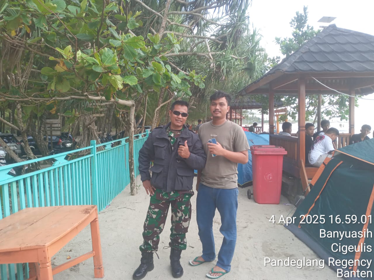 Danramil Cigeulis, Kapten Asep Kandana Hidayat, melakukan monitoring ke Pantai Bugel dan Pantai Camara di Desa Banyu Asih, Kecamatan Cigeulis, Kabupaten Pandeglang, Banten (04/04/2025)