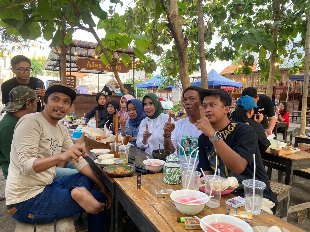 Mereka kaget, ada hutan jati di pusat kota Sidoarjo yang di bawahnya jadi sentra UMKM kuliner. Benar-benar di pusat kota karena lokasinya di seberang Monumen Jayandaru, kompleks alun-alun Sidoarjo.
