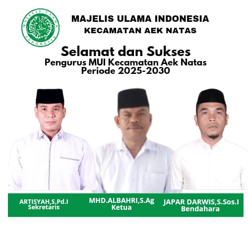 KSB MUI Kecamatan Aek Natas periode 2025-2030 Ketua Muhammad Al Bahri, S.Ag., Sekretaris Artisyah Hamdayani Nasution, S.Pd.I, dan Bendahara Japar Darwis, S.Sos.I.
