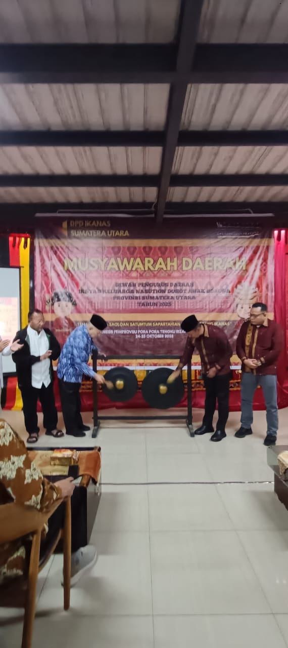 MUSDA DPD IKANAS Sumatera Utara tahun 2025 berlangsung dengan suasana penuh semangat kekeluargaan dan kebersamaan. Kegiatan ini dihadiri oleh 13 Dewan Pimpinan Cabang (DPC) IKANAS se-Sumatera Utara dari total 15 DPC yang telah terbentuk. Para peserta MUSDA bermusyawarah dengan semangat persaudaraan untuk menentukan arah kepemimpinan organisasi ke depan secara demokratis dan mufakat.
