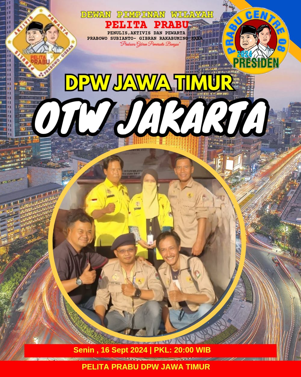 Tepat tanggal merah peringatan Maulid Nabi Muhammad SAW pukul 21.00 WIB tim DPW Pelita Prabu Jawa Timur bersama perwakilan supplier logistik Jawa Timur bertolak dari Surabaya menuju Ibu Kota Jakarta. Keberangkatan tersebut dalam misi bertemu silaturahmi, sekaligus koordinasi dengan DPP Pelita Prabu dan Prabu Centre 08.