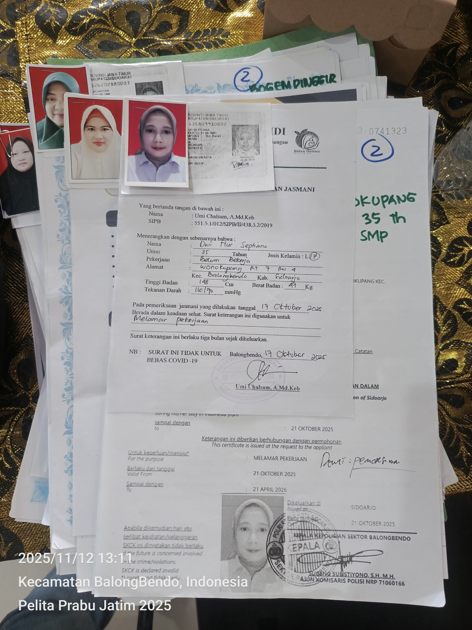 Satuan Pelayanan Pemenuhan Gizi (SPPG) Kebun Coklat, Kecamatan Balong Bendo, Sidoarjo menerima kedatangan warga yang ikut mendaftar menjadi tenaga kerja di dapur MBG. Tujuan mereka untuk interview rekrutmen tenaga kerja dapur tersebut (12/11/2025).
