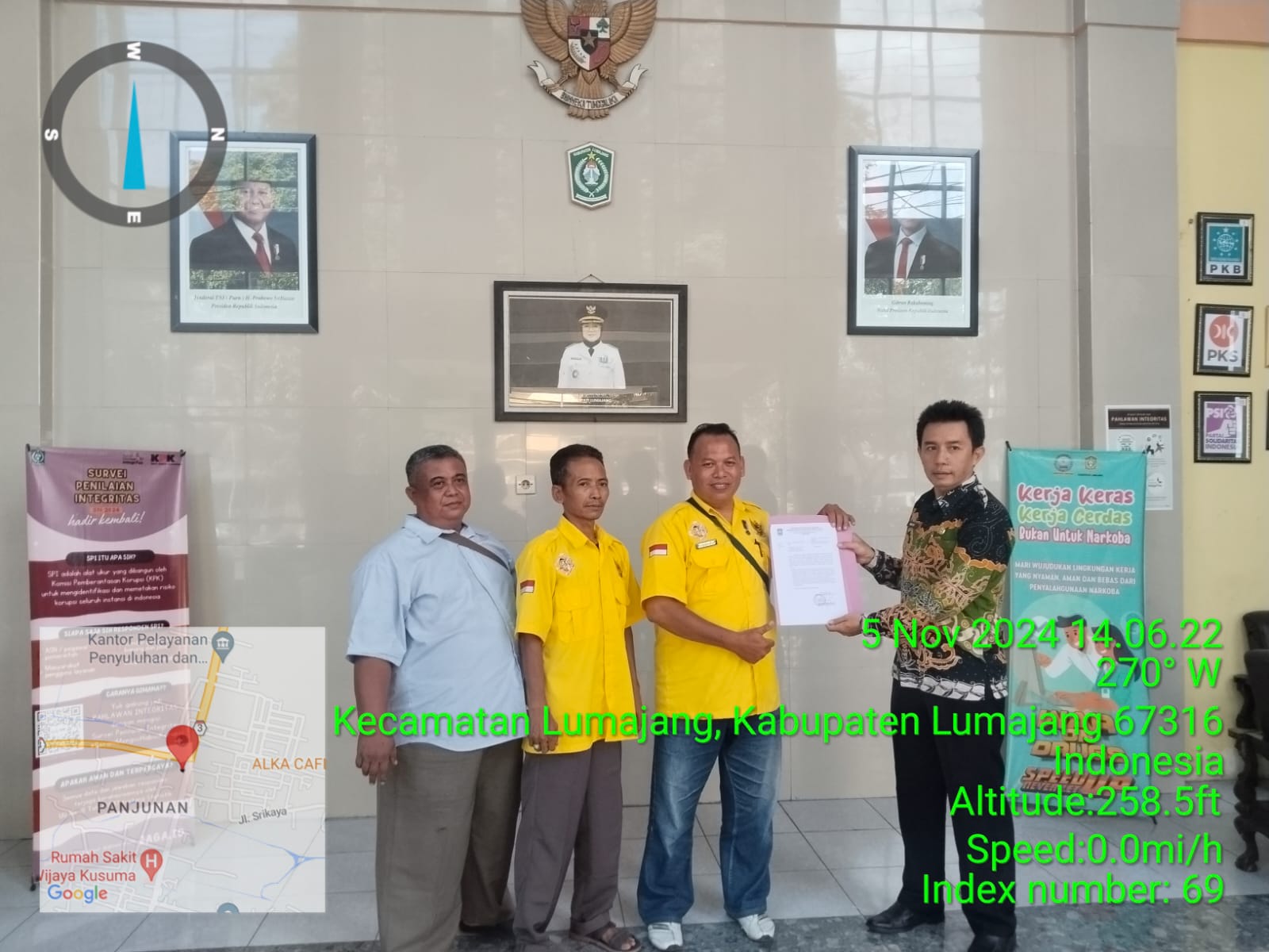 DPC Pelita Prabu Lumajang mendapat kesempatan untuk mendapat surat keterangan terdaftar di Badan Kesatuan Bangsa dan Politik (Kesbangpol).
