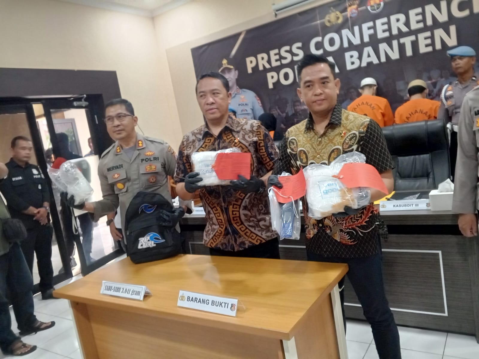 “Selanjutnya setelah disana IM akan dihubungi orang bernama TAILONG kemudianpada Minggu, 17 November 2024 tiba di sekira pukul 16.30 wib dihubungi oleh sdr TAILONG jika sudah tiba di padang agar menuju ke jalan arah bandara daerahkatapiang pariaman, setiba disana IM dihubungi nomor baru mengaku suruhan sdr TAILONG untuk diberikan petunjuk ke tempat pengambilan barang dan setiba di tempat yang diarahkan dekat warung ada tas ransel warna hitam setelahmendapatkan oleh IM dibawa dan disimpan di penginapan, pada saat dariperjalanan dari padang ke lampung IM menggunakan angkutan umum travel dan juga komunikasi dengan sdr TAILONG sampai tiba di pelabuhan bakauhenilampung pada Selasa, 18 November 2024 dan memesan tiket sekira jam 20.30 wib dan pada saat saudara IM berada di atas kapal sdr IM menghubungi sdr TAILONG bahwa kapal akan bersandar di pelabuhan merak banten dan sdr TAILONG memerintahkan IM agar menuju ke tanah abang dan disana nanti aka nada orang yang mengambil paket, pada saat keluar dari arah pejalan kaki dermaga executive merak dicek oleh personel ditresnarkoba polda banten didalam tas berisi narkotkajenis sabu sebanyak 3 paket didalam tas selanjutnya sdr IM dibawa ke daerahtanah abang untuk melakukan penangkapan terhadap orang yang akan menerimapaket tersebut dan pada Rabu dilakukan  penangkapan terhadap sdr FR dan AN yang akan menerima paket atas suruhan WN (DPO) di dalam Hotel di Kec. Tanah Abang, Kota Jakarta Pusat, Prov. DKI Jakarta kemudian kedua orang tersebut menjelaskan pada saat menelpon kedua orang bersama dengan istri sdr WN bernama GN tidak lama tim opsnal melakukan penangkapan satu orang bernama GN untuk dimintai keterangan,” tambahnya.