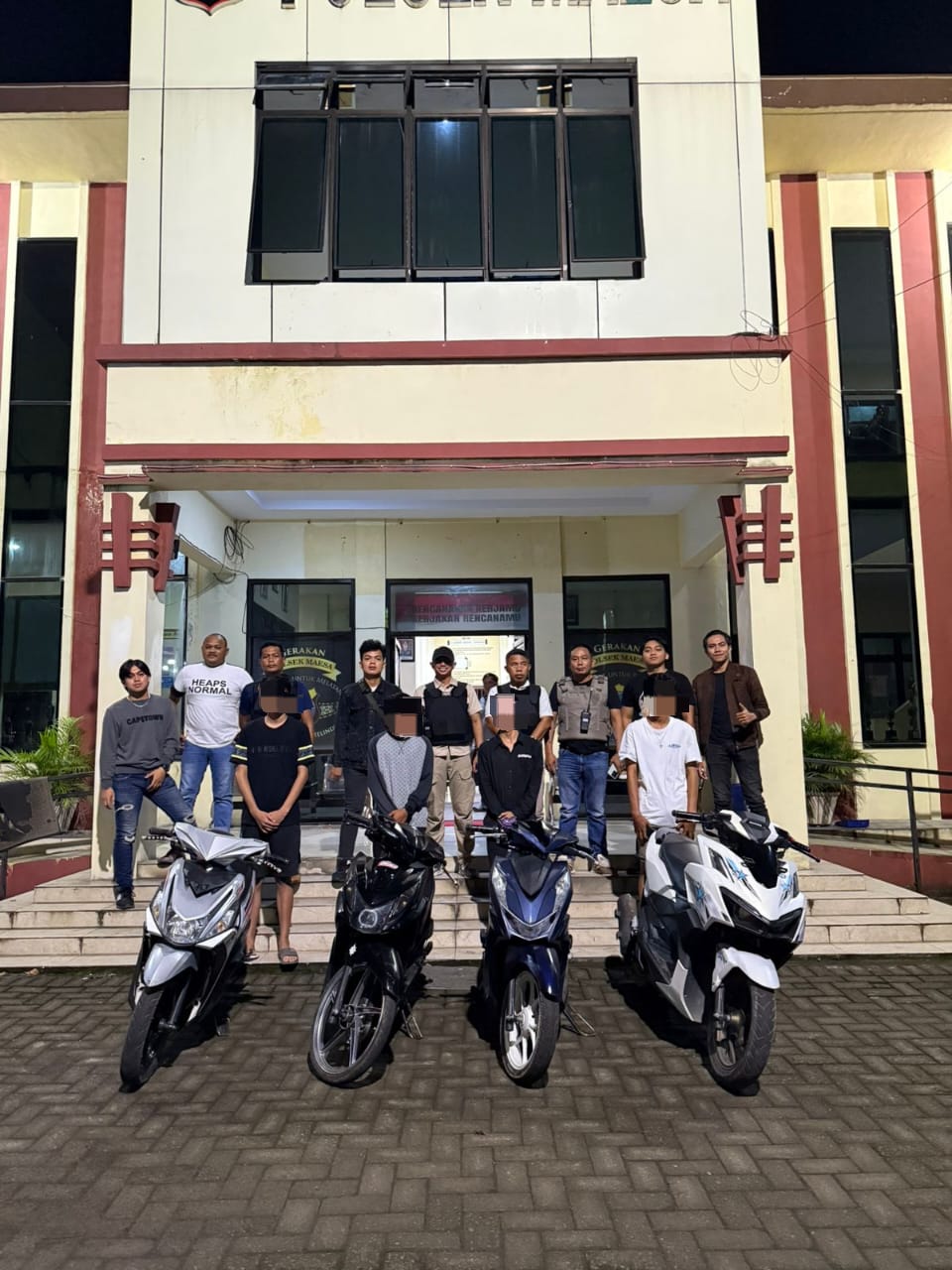 Kini, keempat pengendara dan kendaraan mereka diamankan di Polsek Maesa untuk proses lebih lanjut. Ujar Andrian