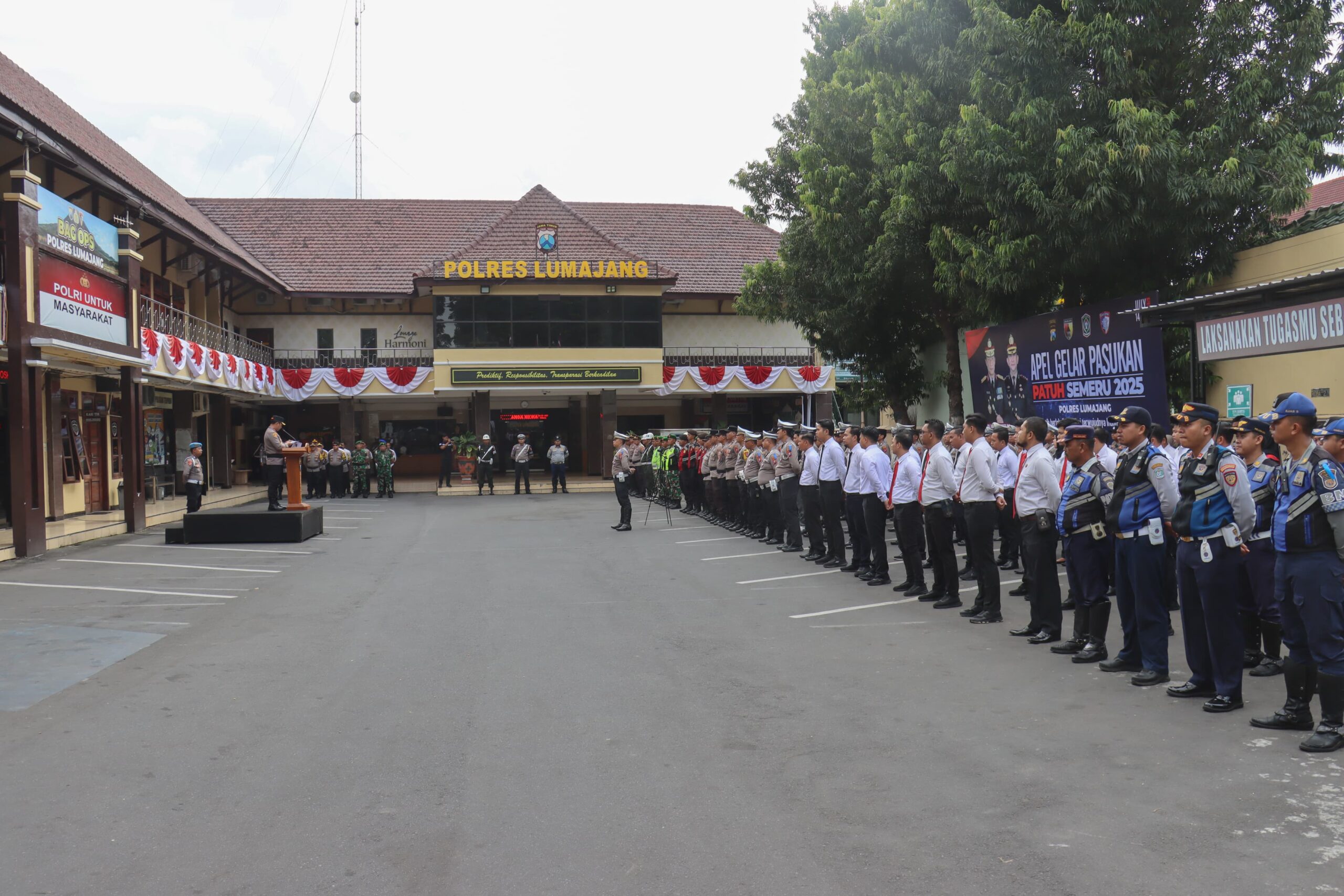 Polres Lumajang menggelar Apel Gelar Pasukan Operasi Kepolisian Kewilayahan Patuh Semeru 2025, Selasa pagi (14/07/2025), di halaman Mapolres Lumajang.