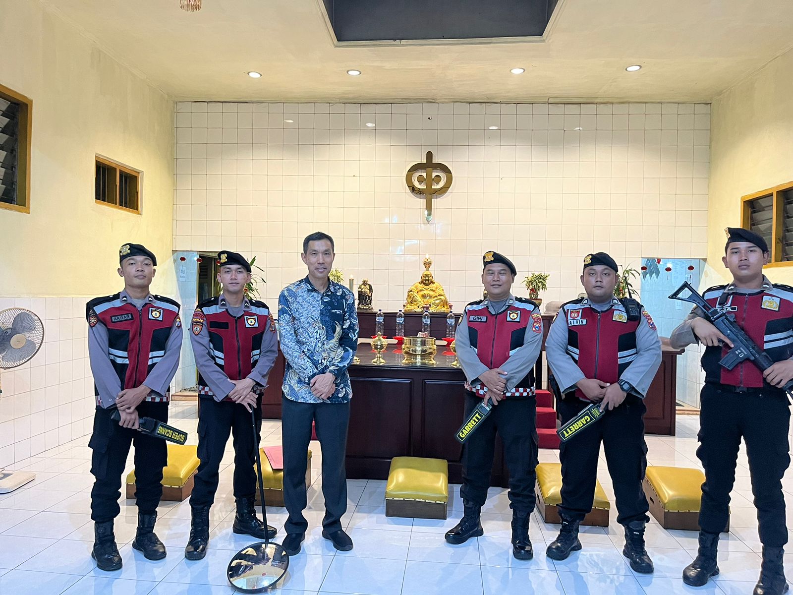 Menurut Kasat Samapta Polres Lumajang, AKP Sajito, S.H., M.H., sterilisasi ini dilakukan sebagai langkah preventif guna memastikan keamanan di area dalam vihara.
