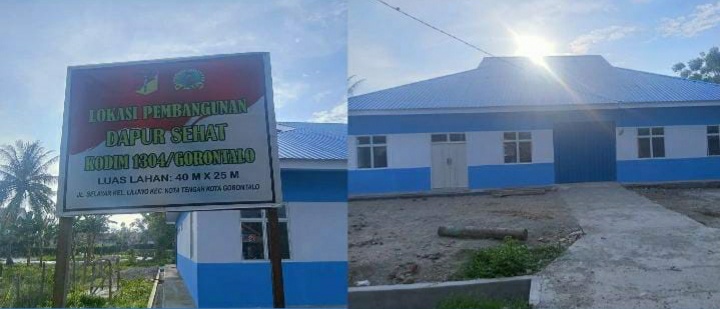 Dalam kesempatan itu pihaknya menyampaikan juga atas pembangunan dapur sehat yang didirikan diatas lahan Kodim 1304 Gorontalo sudah selesai 100 persen dan sudah siap di gunakan.