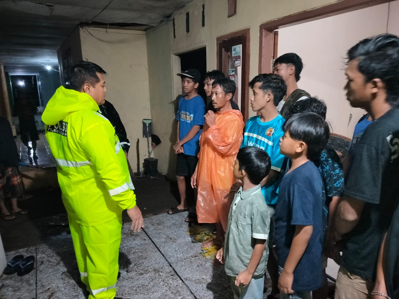 Untuk memastikan keselamatan warga, aparat bersama stakeholder terkait mengevakuasi mereka ke SDN Cowek 2 sebagai tempat pengungsian sementara.
