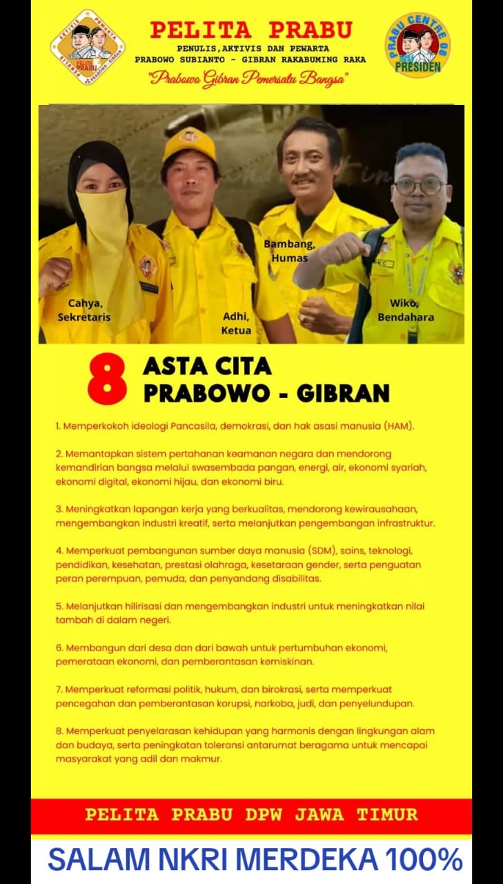Tias Satrio Adhitama, Ketua Relawan Prabowo Gibran, DPW Pelita Prabu Jawa Timur Apresiasi Langkah Mendes PDT Untuk Memperkuat Pengawasan Penggunaan Dana Desa